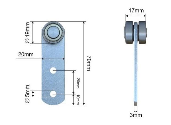 Wózki firanki naczepy montowane na pasy lub śruby. Wózek jezdny kurtyny bocznej naczepy montowany w prowadnicy firanki naczepy. Stosowany w naczepach kurtynowych. Stalowy płaskownik z otworami na pas lub śruby, rolki stalowe lub tworzywowe, obustronne lub jednostronne.